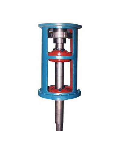 (3)双支点支架:当无支点或单支点机架不适用时,可采用双支点机架。但其中下支点轴承结构应采用带紧定的锥孔调心滚子轴承,便于安装维修,且搅拌器与减速机的连接必须选用HL型弹型柱销轴承。